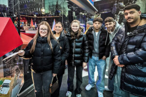 Nach Wochen voller Backen, Verkaufen und Organisieren – und drei richtig erfolgreichen Spendenverkaufstagen in der Schule – haben die Schülerinnen und Schüler der IN252 gemeinsam mit ihrer Klassenlehrerin Frau Risse eine stolze Summe von 600 Euro beim „WDR 2 Weihnachtswunder“ auf dem Burgplatz in Essen übergeben.